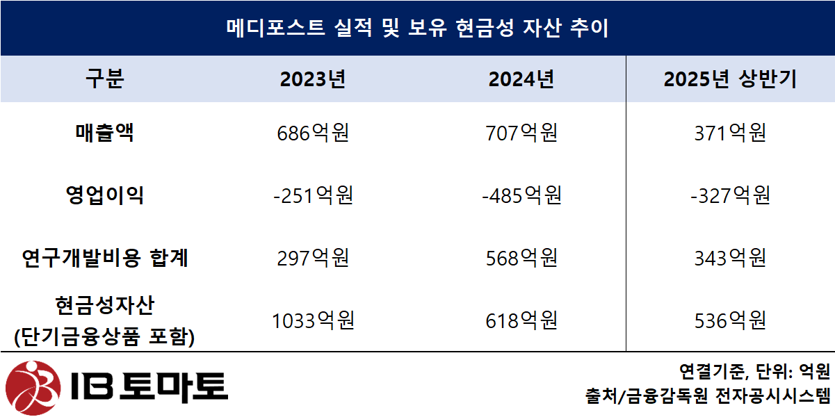 이와 관련해 <IB토마토>는 메디포스트 측에 건기식 사업 확대 추진 시점이나 대략적인 구상, 향후 예상되는 연구개발비 투입 규모에 대해 문의했으나 답변을 듣지 못했다.