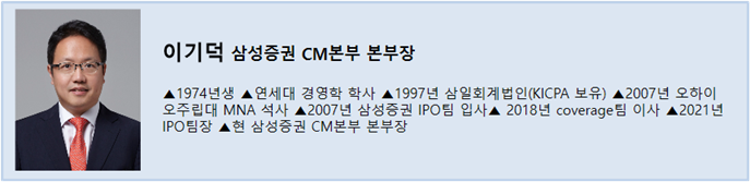 삼성증권(016360) (39,600원 ▲50원 +0.13%)은 대형 기업공개(IPO) 주관을 잇따라 앞두고 있다. 그동안 중위권에 머물렀던 주관 순위에서도 의미 있는 반전이 가능할 것이라는 전망이 나온다. 하지만 삼성증권의 IPO 조직을 이끌고 있는 이기덕 CM본부장은 올해의 목표를 단순한 순위 경쟁이 아니라, 얼마나 시장의 모범이 되는 딜을 만들어내느냐에 두고 있다고 말한다.